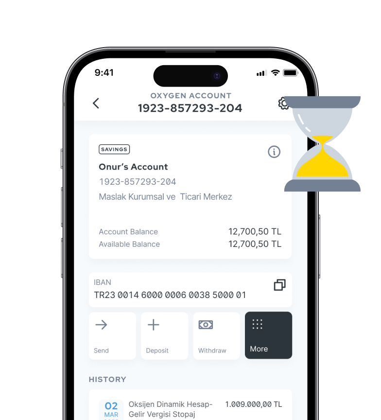The Oksijen Account automatically connects to an overnight deposit account at the end of the day from the demand deposit account it is linked to, with a term of one day.