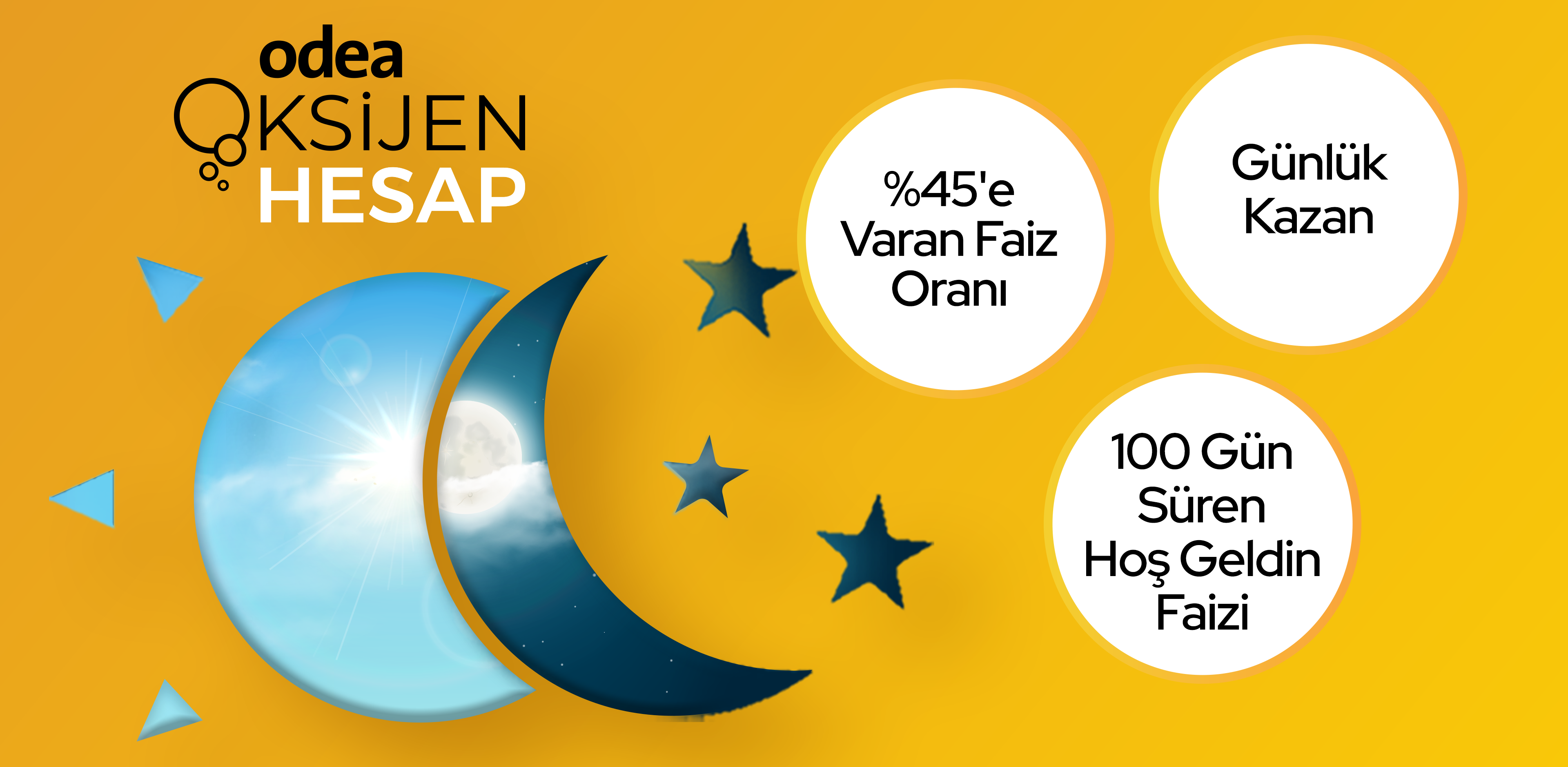 Günlük faiz kazandıran Oksijen Hesap ile birikimlerinizi gün içinde kullanın, gece ise otomatik vadeli hesapta değerlendirin. 100 gün sürecek avantajlı hoş geldin faiz oranlarıyla, istediğiniz para biriminde birikim yapmanın rahatlığını yaşayın!