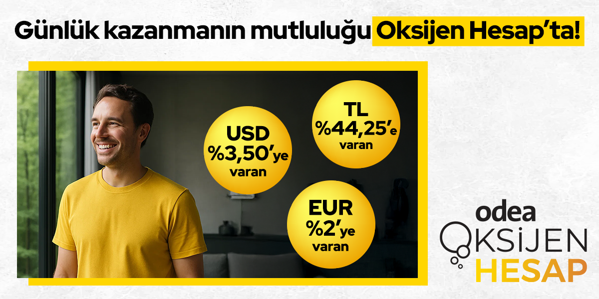 • Hoş geldin faizi Odeabank'ta ilk kez hesap açan müşterilerimiz için hesap tanımlama tarihinden 100 gün süre ile geçerli olup 100 günün sonunda hesabınız Oksijen Hesap'ın devam faizi ile değerlenir.