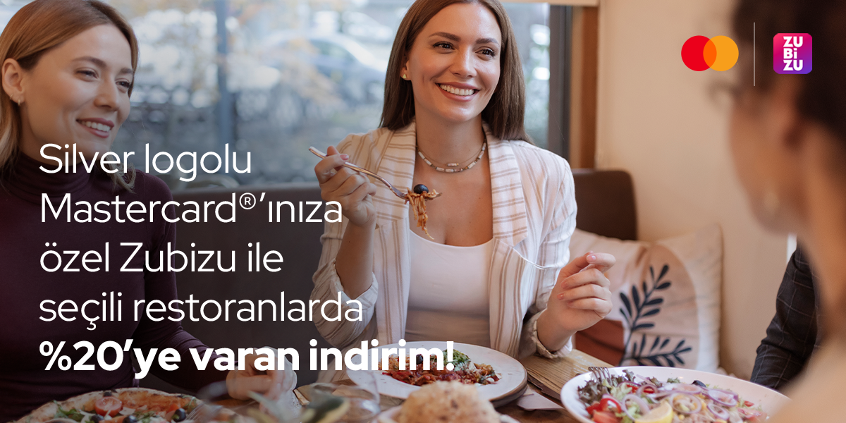 31 Mart 2026 tarihine kadar ZUBİZU ile anlaşmalı restoranlarda 3.000 TL ve üzeri harcamalarınızda %10, 6.000 TL üzeri harcamanızda %20 indirim kazanmak için anlaşmalı restoranlarda ZUBİZU QR kodu okutarak Private Card veya Ayrıcalıklı kartınızla ödeme yapabilirsiniz.